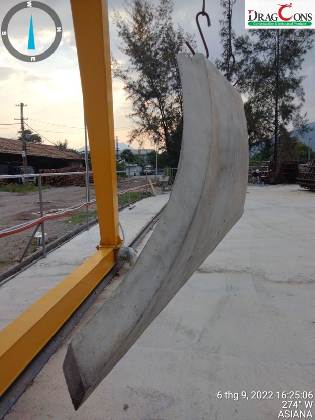 For Dragons, this is also one of the highly challenging projects, in addition to ensure the sophistication of the pre-engineered concrete components, the work must also satisfy the technical requirements and bearing capacity with solid structure with time. People often think of solid, rough things when mentioning the concrete, but regarding this work, concrete is not only ordinary reinforced concrete, but also has delicate curves and glides to form the perfect facade for the work. Therefore, the stages from mold production to plate casting are very elaborate and meticulous. In addition, the problem of construction and installation is also very complicated. Because the concrete slabs are long and heavy and installation is required to be made by the height of the building, it requires Dragcons’ structural engineers to carefully calculate every detail, installation accessories, along with a team of skilled installation workers to be able to complete the project at the best performance.